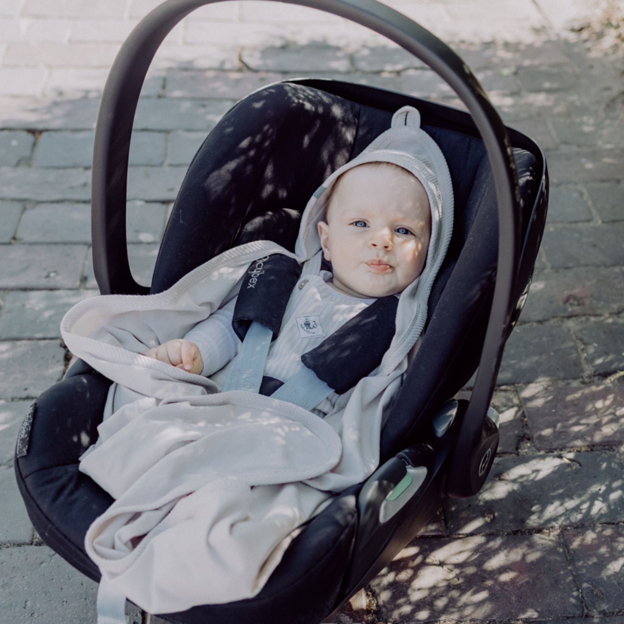 Le nostre coperte avvolgenti sono compatibili con tutti i comuni ovetti dotati di sistema di cinture a 3 o 5 punti e, grazie alle fessure integrate per le cinture, permettono un fissaggio sicuro senza che la coperta scivoli.