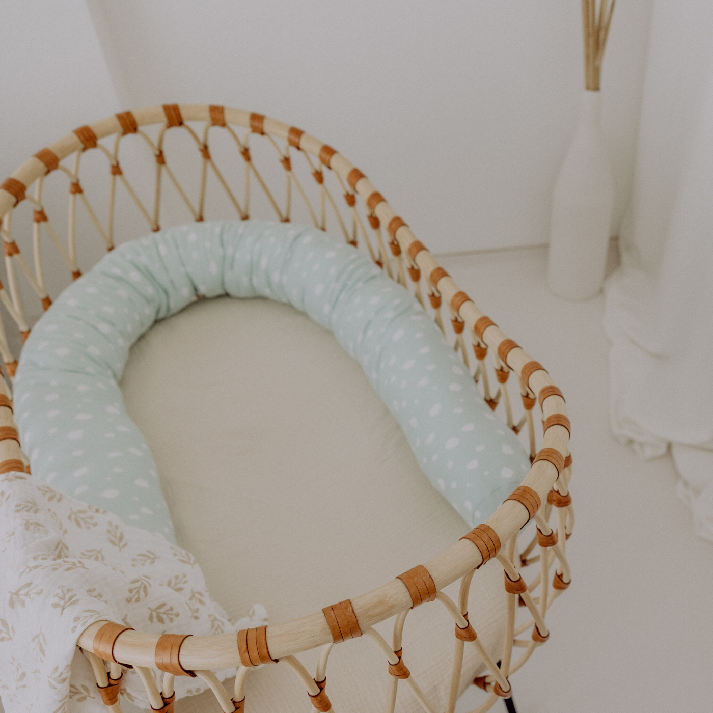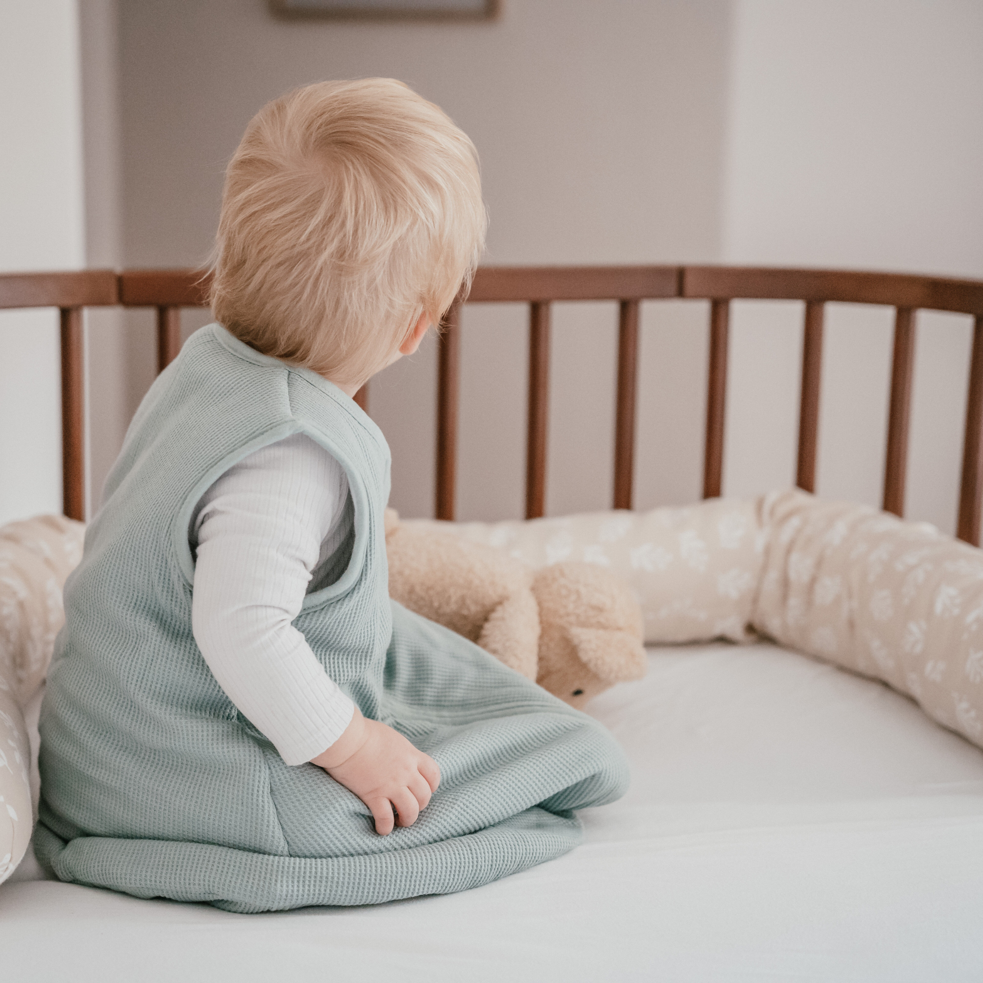 La nostra paracolpi a rotolo emma & noah si adatta perfettamente a qualsiasi lettino, poiché non è legata a una forma predefinita. Questo garantisce al tuo bambino una protezione ottimale da sbarre dure, pareti fredde, correnti d’aria e rumori durante il sonno. Allo stesso tempo, il bambino ha ancora spazio sufficiente nel letto e non viene disturbato dal paracolpi.