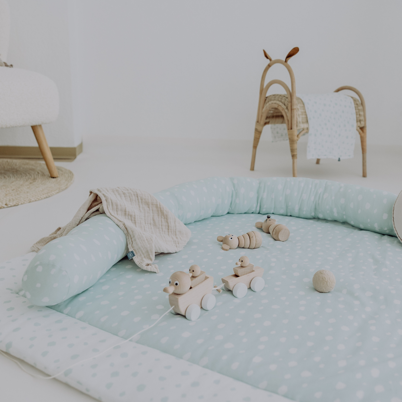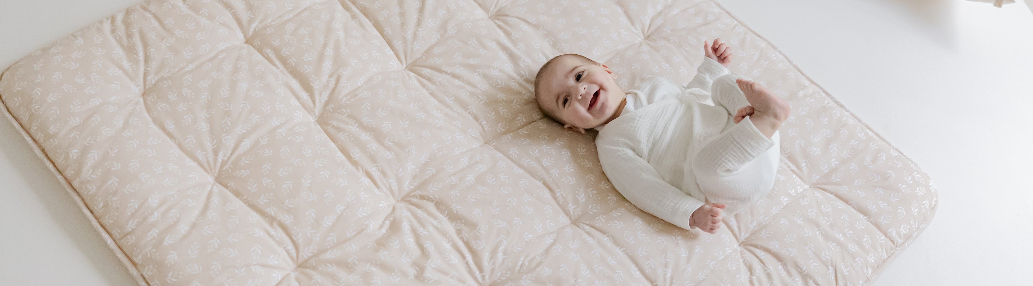 Soprattutto durante le prime esplorazioni del tuo bambino, è importante garantire un’adeguata sicurezza. Ed è qui che entrano in gioco i nostri tappeti da gioco: sono realizzati in modo sostenibile con 100% cotone biologico. L’imbottitura è composta da poliestere di alta qualità, che mantiene il tuo piccolo particolarmente al caldo quando è sdraiato sul pavimento, spesso freddo.