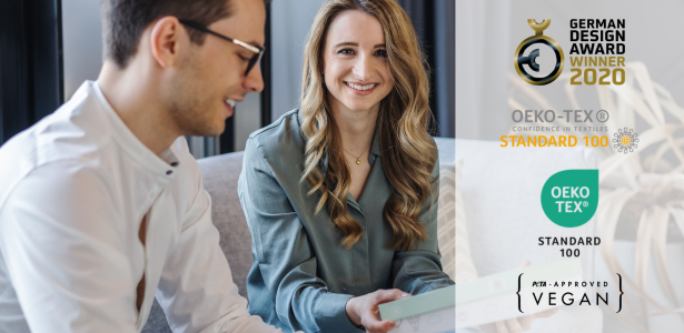 I nostri prodotti sono certificati dai sigilli di controllo indipendenti OEKO-TEX Standard 100 e PETA Approved Vegan. Questo garantisce prodotti di alta qualità e privi di sostanze inquinanti, che fanno bene al bambino e all'ambiente. Siamo stati inoltre premiati con il German Design Award 2020, di cui siamo molto orgogliosi.