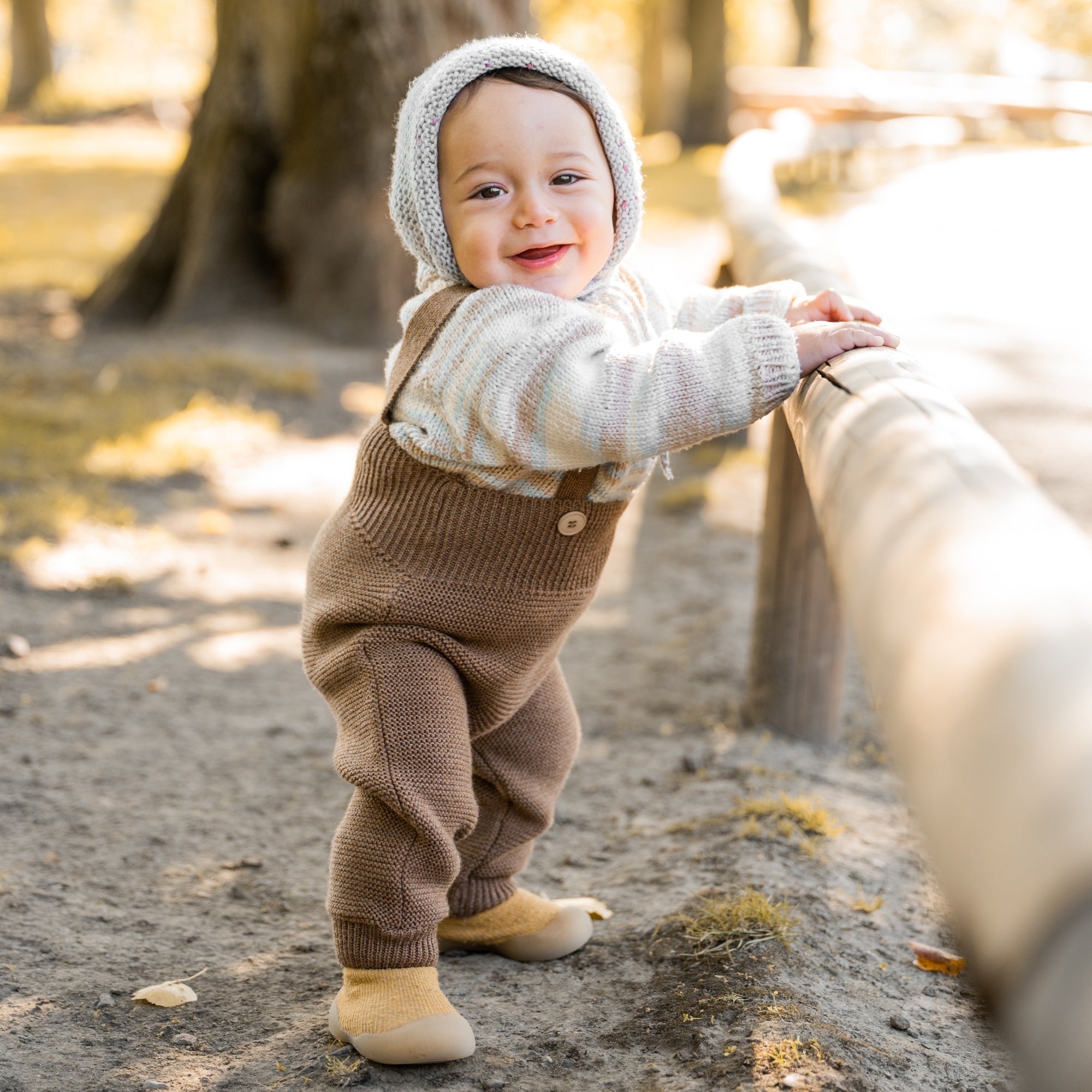 La nostra missione sono prodotti sostenibili e durevoli, che fanno bene al tuo bambino e al nostro ambiente. Per questo motivo, abbiamo scelto consapevolmente lana di altissima qualità (lana merino) in qualità biologica. Nella sua produzione vengono rispettati i più severi standard di protezione degli animali per garantire il benessere delle pecore.